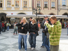 jsem pro zpestření výuky připravila pro svoje pomaturitní studium. Ráno na Staroměstském náměstí se rozdělili do dvou družstev, dostali mapky, kde měli označenu polohu toho kterého knihkupectví a úkoly, které tam měli splnit. Většinou měli od prodavače zjistit nejprodávanější knihu (vypadá to, že The Girl with the Dragon Tattoo od Stiega Larssona se těší značné oblibě), knihy českých autorů, zjistit jaké tituly zjednodušené četby jsou k dispozici, vybrat dětskou knihu, která se jim líbí apod.