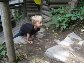 Miky strávil veškerý čas u výběhu s medvědem. Mostíky a schodíky ho zaujaly víc než samotný medvěd.