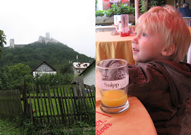 S přestávkou na Kokoříně jsme si to dokodrcali do vesnice Okna, odkud se šlo pěší túrou na Bezděz. Miky skoro po roce nesen v nosítku a znovu se mu to zalíbilo.
