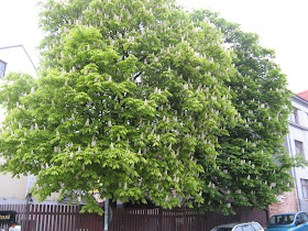 Takhle kvetly kaštany v bývalém hostinci U Kaštanu, kde jsme jednoho letního odpoledne kdysi v devadesátých letech minulého století seděli se Sylvou a s tátou.