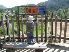 Ubytovaní jsme byli v penzionu U Studničků - Mikyho nejvíce dostala sprcha s dvířkama. Co mu to asi tak mohlo asociovat než dveře metra. Takže ukončete nástup i výstup nás ráno budilo ze spaní i mimo Prahu. Vždycky říkal: ještě z Dejvický na Skalku a půjdeme:-)) U penzionu mají hřišťátko s kolotočem a houpačkama a do "kavárny" (alias stánku s občerstvením) to je co by kamenem dohodil.