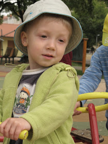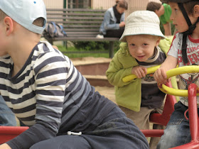 Od středy do neděle jsme byli slamění vdovci, Ondra byl na služební cestě ve Wiesbadenu. Program jsme měli bohatý (letiště, knižní veletrh), v sobotu jsme se vydali na hřiště Na Výtoni. Miky strávil víceméně celou dobu na kolotoči (poslední dobou už se má tak nějak víc k dětem).