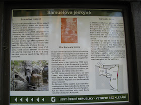 Cestu zpátky do penzionu Miky proklimbal Ondrovi na ramenou. Po občerstvení v "kavárně" jsme ještě vyrazili k Samuelově jeskyni, dokázala jsem už ale vyfotit pouze informační ceduli.