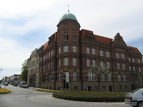 Tohle je budova pošty na náměstí: