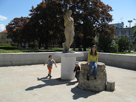 Kousek od náměstí jsme si na zahrádce dali k obědu pizzu, to už se mi dlouho nestalo, že bych snědla celé to obrovské kolo. Miky teď v restauracích sleduje, kde zůstalo na stole nádobí a vždycky k tomu poznamená: "Už na to jde, ten pan číšník /ta paní servírka". Nenechá je ani vydechnout, chudáky.