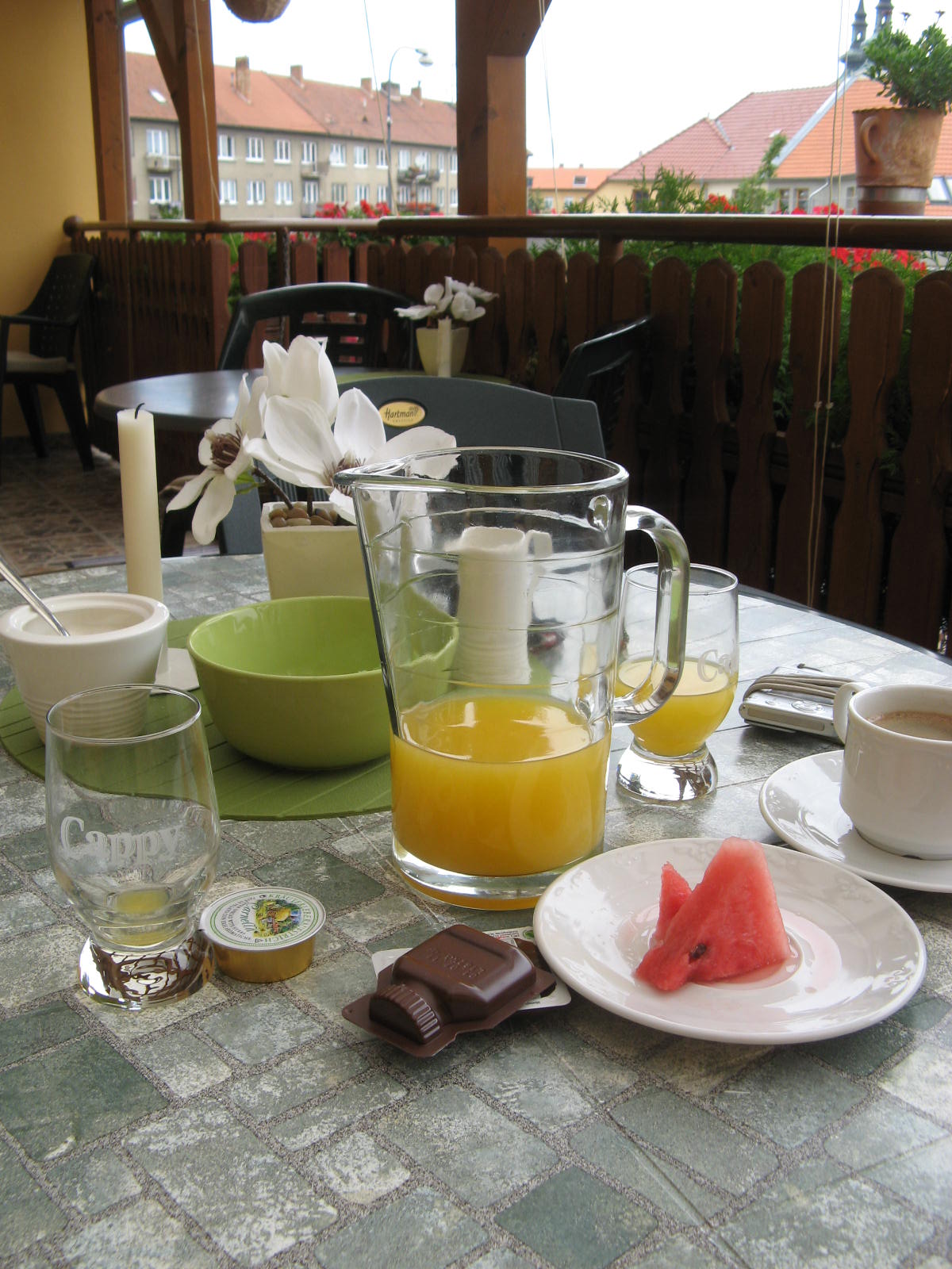 Ráno nám Jaruš naservírovala snídani na terase (a to tak, že i s předkrmem), no a prostě byla plně k dispozici:-)